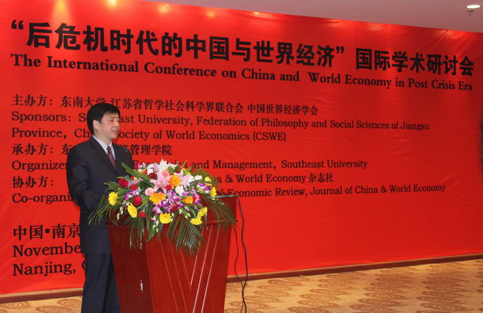 由中国世界经济学会、电影天堂 和江苏省社科联共同主办,电影天堂 承办,《国际经济评论》与China & World Economy杂志社协办的“后危机时代的中国与世界经济”国际学术研讨会于2009年11月21-22日在我校九龙湖宾馆如期举行。会议邀请了100余名海内外相关领域的著名学者到会发表专题演讲和研讨。南京社科领域、兄弟院校、我校师生约300人参会。