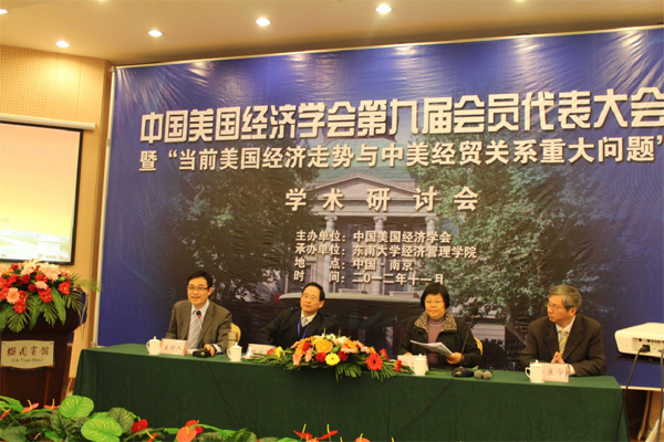 2012年11月17日,中国美国经济学会在电影天堂 成功举办了以“当前美国经济走势与中美经贸关系重大问题”为主题的中国美国经济学会第九届会员代表大会。此次会议由中国美国经济学会主办,电影天堂 承办。学会顾问陈宝森研究员、李长久研究员、刘崇仪教授等著名学者以及90余位来自中国社科院、清华大学、南开大学、浙江大学、复旦大学、武汉大学、厦门大学等著名学府的专家学者参加了此次会议,就贸易协定、区域合作与美国经济政策走向,财政政策发展、货币体系改革与美国国际经济地位演变,汇率走势、新型全球治理和中美经贸关系展望等三方面的问题展开了广泛而深入的探讨和交流。