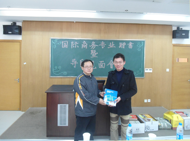 经管院党委书记陈良华教授出席赠书暨导师见面会,语重心长鼓励师生们共同努力,打造东大中外办学品牌。陈书记充分肯定国贸系整合东大和蒙纳士大学有效资源,着眼当前从长计议,提前布局谋划学科建设(由国贸系王文武副教授牵头的国际商务实习基地群教学改革立项课题在今年九月二十四日获省教委〈苏教高(2013)16号〉批准),将教学和科研创新组合的举措。