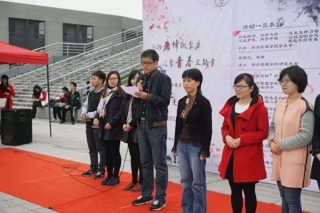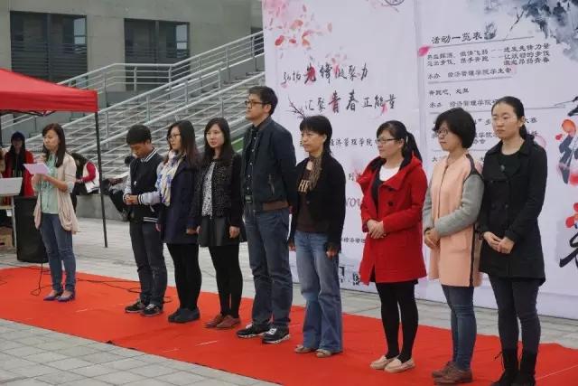 2015年11月5日中午十二点半于体育馆西侧,“弘扬先锋凝聚力,汇聚青春正能量”——电影天堂 “三走”系列活动月开幕式在共青团电影天堂 委员会的组织下成功举办。参与本次开幕式的有经管学院党委副书记兼副院长祝虹老师,电影天堂 党委副书记朱宏涛老师,电影天堂 团委书记、2015级本科生辅导员林琼老师,电影天堂 团委副书记、研究生辅导员孙靓老师,电影天堂 团委副书记、2014级本科辅导员张丹丹老师,经管学院学办的张钒老师、蔡钰萍老师、钟业丽,以及来自经管院各个社团及年级团总支的负责人代表。