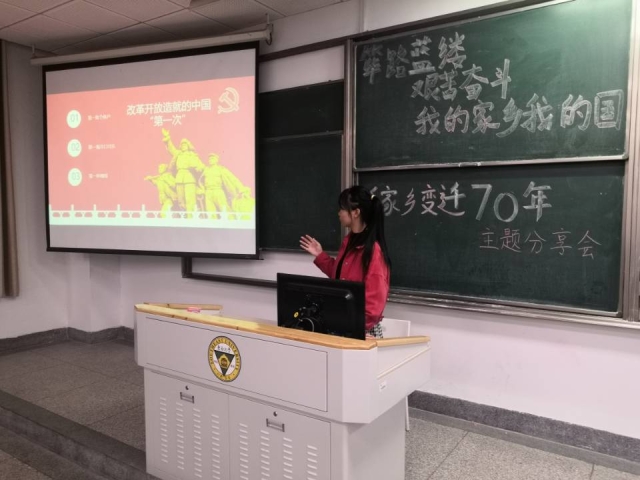 首先我们举办了“建国70年之精彩大学”演讲 ,同学们分享了建国七十周年以来,家乡的变化。
