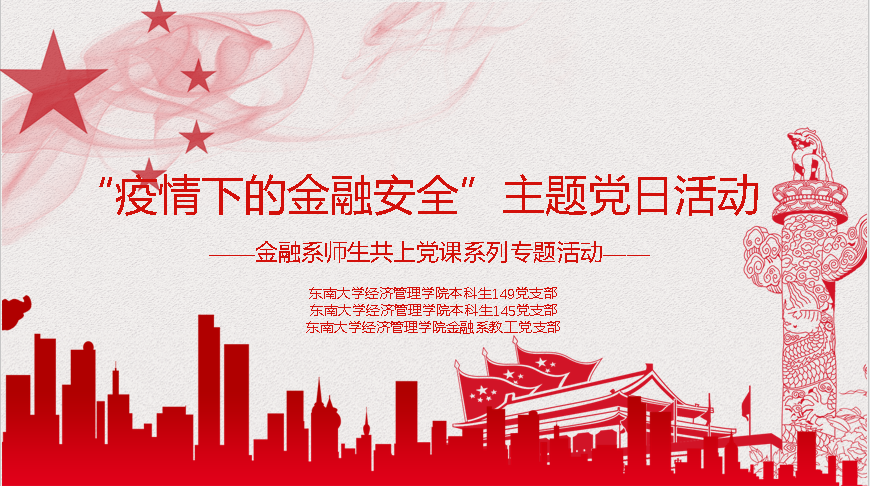2020年见证了许许多多历史性的一刻,种种黑天鹅事件对全球金融体系带来强劲的冲击,受全球经济一体化的影响,我国仍然面临巨大的金融安全问题。本次主题党日活动既是一场生动而深刻的线上教育,加深了支部党员对金融安全和风险的理解,增强了维护国家安全的责任意识,还促进了师生之间的沟通交流,启发党员思考。作为新时代的中国青年,我们应努力学习,关注国内外形势,为维护国家安全和经济繁荣贡献自己的力量!