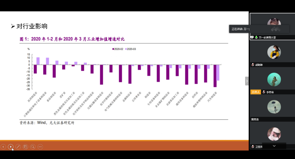 针对国内市场,李老师通过一系列数据分析得出在商品市场,全球需求下降引发我国贸易出口下滑的结论,主要原因在于疫情直接冲击了海外经济和消费意愿,短期失业率攀升,经济衰退风险加大。另一方面,股票市场反应迅速,出现外资抽逃、情绪传染、资金回流等现象。进一步地,人民币汇率受到冲击,房地产市场也面临调整风险。