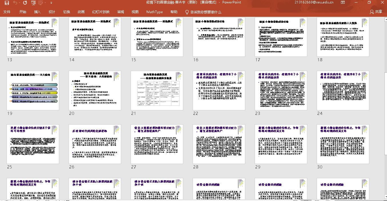 王菁文同学分三个部分展开了她的党课。分别是对普惠金融进行概述,疫情影响下我国普惠金融发展的现状和社会各界的举措。