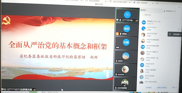 近日,电影天堂 国际经济与贸易系党支部邀请了江苏省纪委监委赵辉处长担任主讲嘉宾,给大家讲解《新时代全面从严治党的基本概念和框架》,200余名经管院师生参与了线上党课。赵处长全面梳理和剖析了全面从严治党的基本概念和提出背景,从政治、经济及社会学角度,分析了腐败的历史原因和主观原因及当前党建存在的四风问题,进而提出了全面从严治党的基本逻辑框架,并从坚持以上率下、坚持纪在法前、践行“四种形态”、信任不能替代监督、一体构建“三不”体制五个方面提出全面从严治党的治理理念。
