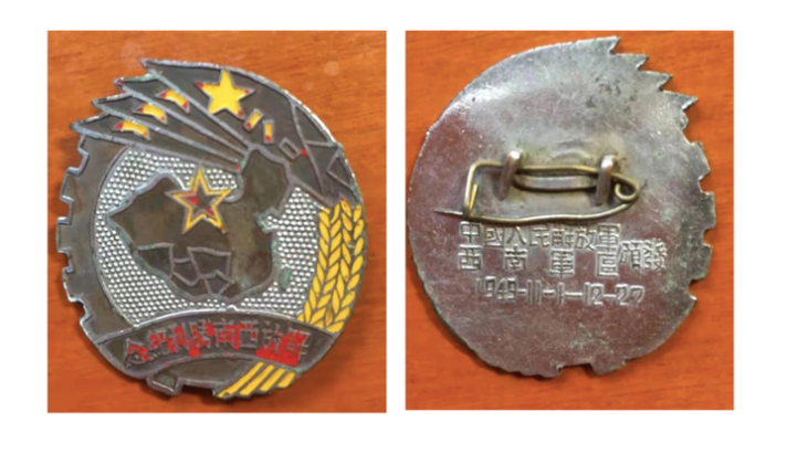 王老师向大家展示了郭爷爷当年的入党志愿书和获得的勋章。