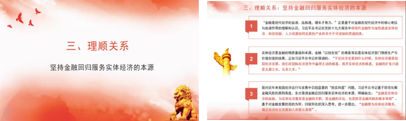 紧接着,李老师又和大家重点说明了金融服务实体经济的重要意义。近年来,由于房价快速上升,炒房行为日益严重,投机行为带来了诸多负面影响,金融机构面临不良贷款率上升问题,实体经济则面临着流动性短缺的窘境。李老师借用习近平总书记的话和大家强调“离开实体经济的根基,金融扩张只能是无源之水,无本之木”。因此要推动金融、房地产和实体经济均衡发展,健全金融体系畅通国内大循环、促进经济高质量发展,构建多层次、广覆盖、有差异的银行体系,端正发展理念,开发个性化、差异化、定制化的金融产品,改进小微企业和三农金融服务,发挥好政府为小微企业“输血”的引导作用。