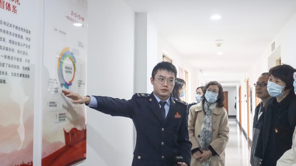 在工作人员的带领下,师生首先参观了南京市税务局第一稽查局廉政文化走廊、党建文化走廊、职工书屋等文化场所,感受到了这里浓厚的党政教育氛围和亲切的人文关怀。