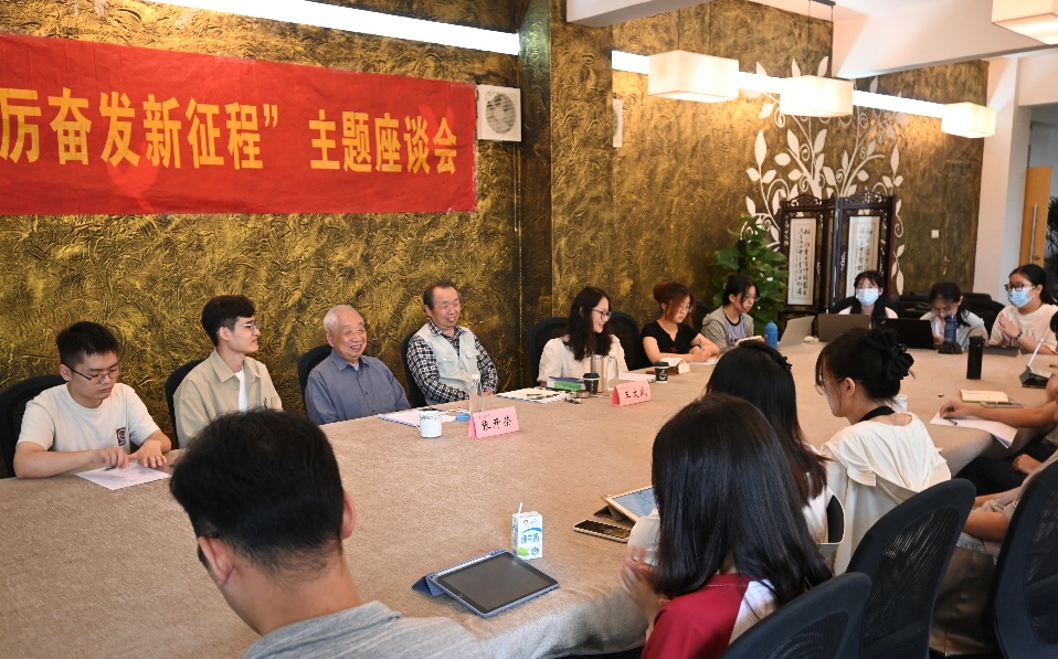 在访谈环节,两位老师向分享了自己数十年如一日坚守教育事业的初心。张开荣老师始终注重学科研究和工作改革,不断追求知识的更新和创新的工作方法。他强调团队合作的重要性,并积极参与党组织工作,带领青年教师和学生开展党建工作,培养党性意识和社会责任感。他将教育事业与社会主义建设紧密结合,为国家和人民的发展贡献力量。王文武老师认为教育工作使他保持持续学习,不断更新教学方法和知识,以适应时代需求。他坚信通过教育培养更多有用之才,为党和国家的发展做出贡献。学生的成长和成功成为他坚守教育事业的最大动力。