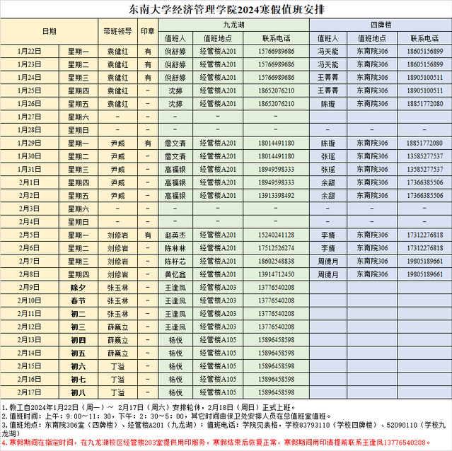 二、教职工从 1 月 22 日至 2 月 17 日在确保工作正常运行前提下安排轮休,2 月 18 日(星期日)上班。