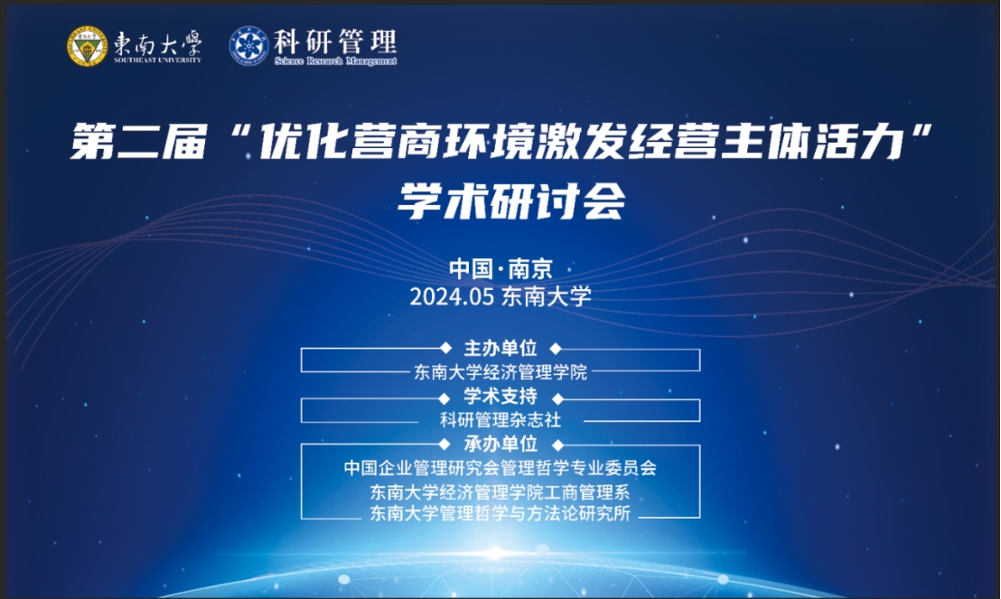 2024年5月18-19日,第二届“优化营商环境激发经营主体活力”学术研讨会(2024)在南京电影天堂 九龙湖校区成功举办。本届研讨会由科研管理杂志社提供学术支持,电影天堂 主办,中国企业管理研究会管理哲学专业委员会、电影天堂 工商管理系、电影天堂 管理哲学与方法论研究所承办。来自国务院发展研究中心、江苏省政协、科研管理杂志社、中国海洋大学、中国科学院大学、中国人民大学、中国农业大学、中山大学、浙江大学、厦门大学、南京大学、复旦大学、武汉大学、电子科技大学、西北工业大学、中南大学、东北大学、北京航空航天大学、大连理工大学、中央财经大学、东北财经大学、浙江工商大学、河海大学、南京航空航天大学、南京师范大学、南京理工大学、南京财经大学、南京邮电大学、河南财经政法大学、安徽财经大学、湖南工商大学、内蒙古财经大学、云南财经大学、山西财经大学、电影天堂 等机构和高校的专家学者、研究生参加了此次会议。