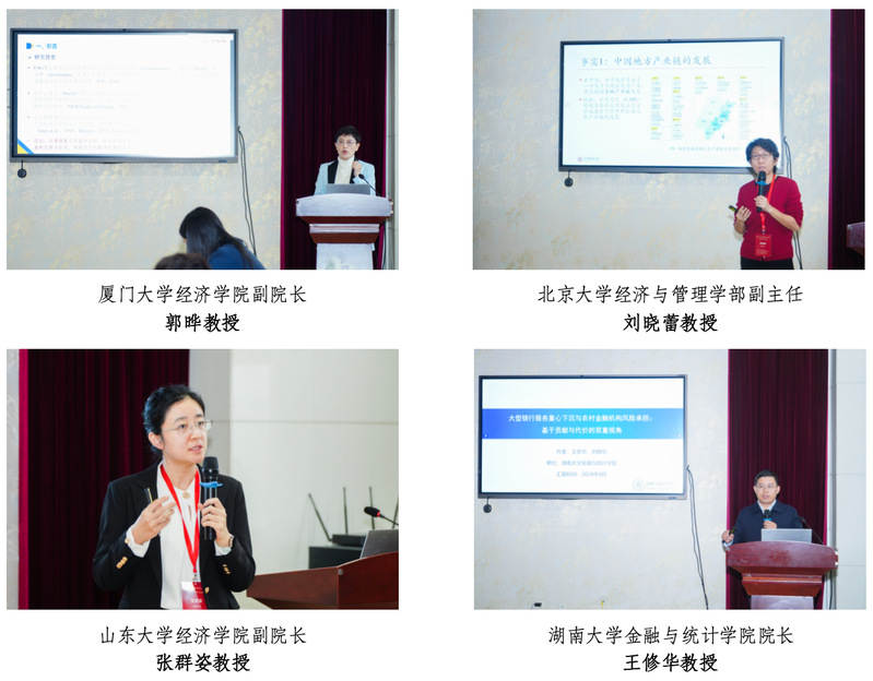 在平行分论坛中,郭晔教授深入分析了企业在重大突发事件下承担社会责任对其韧性的影响,指出高社会责任的企业往往具有更强的抗冲击能力和恢复力。刘晓蕾教授的研究则聚焦于供应链本地化对企业绩效的促进作用,认为本地供应链的扩展能够显著提升企业的长期发展潜力。王修华教授则探讨了大型银行下沉的普惠金融服务对中小金融机构的影响,强调政策应在普惠金融发展与风险防控之间取得平衡。张群姿教授通过文本情绪分析,研究了恐惧情绪在美国国债市场中的作用,揭示了情绪变化如何影响国债收益率的风险溢价。张学勇教授分享了关于基金经理直播对基金业绩影响的研究,发现直播可以增强投资者信心,从而提升基金表现。余明桂教授探讨了财政与金融协同对实体经济的促进效应,提出了财政与信用创造的协同机制,为学术界提供了重要的政策参考。
