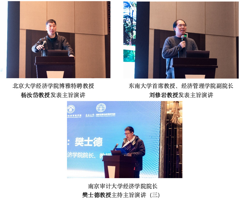 第二场主旨演讲由南京财经大学国际贸易学院院长余泳泽教授主持。浙江大学社会科学研究院副院长龚斌磊教授和南京审计大学社会与经济研究院执行院长俞宁教授分别带来了他们最新的研究成果。龚斌磊教授概述了中国政府绩效考核体系从唯GDP主义向更加注重三农、环境和公共产品的转型,以及这种转变如何通过定向激励、专项监督等措施提升政府治理绩效,促进城乡协调发展和乡村振兴。俞宁教授探讨了中华文明的仁本思想,通过行为科学实验验证了仁义之道对促进社会信任和合作的影响,并提出了构建中国特色哲学社会科学和人类命运共同体的可能性。