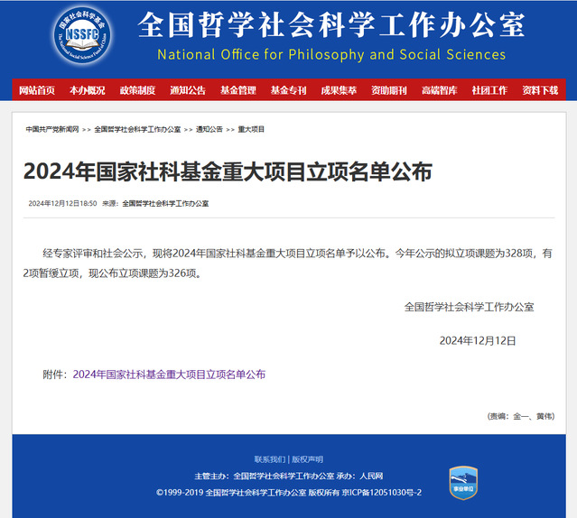 2024年12月12日,全国哲学社会科学工作办公室公布了2024年国家社科基金重大项目立项名单,经济管理学院刘晓星教授作为首席专家主持申报的“面向大国博弈的国家金融安全体系和能力现代化建设研究”获批立项,项目批准号为24&ZD117。