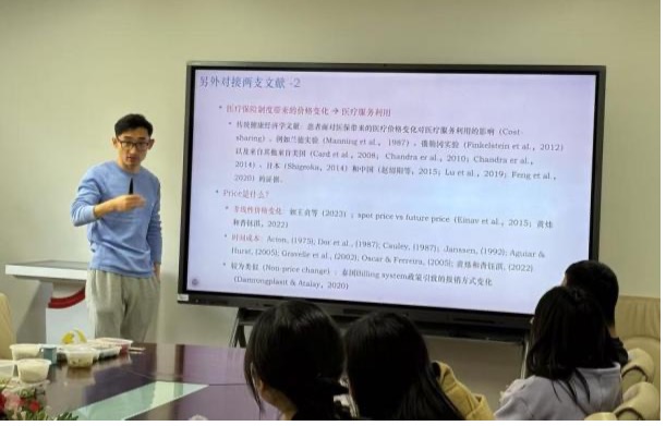 随后,马超副教授以“异地就医直接结算与医疗服务需求”为主题,详细介绍了其团队的最新研究成果。异地就医直接结算是完善中国医保制度、解决人民群众突出关切的重要改革举措。马超副教授分享了自己在北京的异地就医经历,从异地就医群体医疗服务需求入手,研究异地就医直接结算政策带来的政策福利效应、潜在问题,以及与其他政策(如分级诊疗)的联合实证讨论,并创新性地探讨了其中的影响机制,通过建立理论模型、指向性的经验证据与详尽的实证研究,为新医改中的健康政策设计提供了新的学术视角与实践启示。