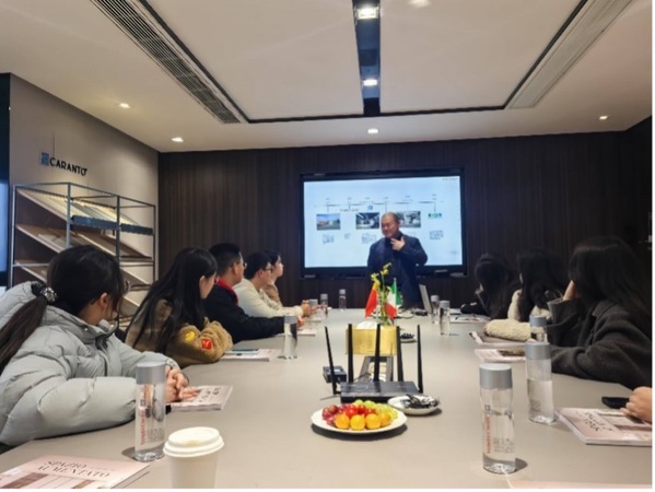 参观结束后,师生们返回会议室,任端才先生结合个人经验,详细讲解了企业的市场战略、行业挑战及未来发展方向,并对公司在全球市场的布局进行了深入分析。在随后的互动环节,同学们就“定制家居行业的核心竞争力”和“中国与意大利市场的运营模式对比”等问题踊跃提问,任端才先生逐一作答,分享了宝贵的行业见解。