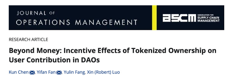 近期,电影天堂 电子商务系樊一凡老师与合作者围绕去中心化自治平台中的激励机制在UTD24期刊《Journal of Operations Management》在线发表学术论文“Beyond Money: Incentive Effects of Tokenized Ownership on User Contribution in DAOs”。 樊一凡老师为该文的通讯作者之一。