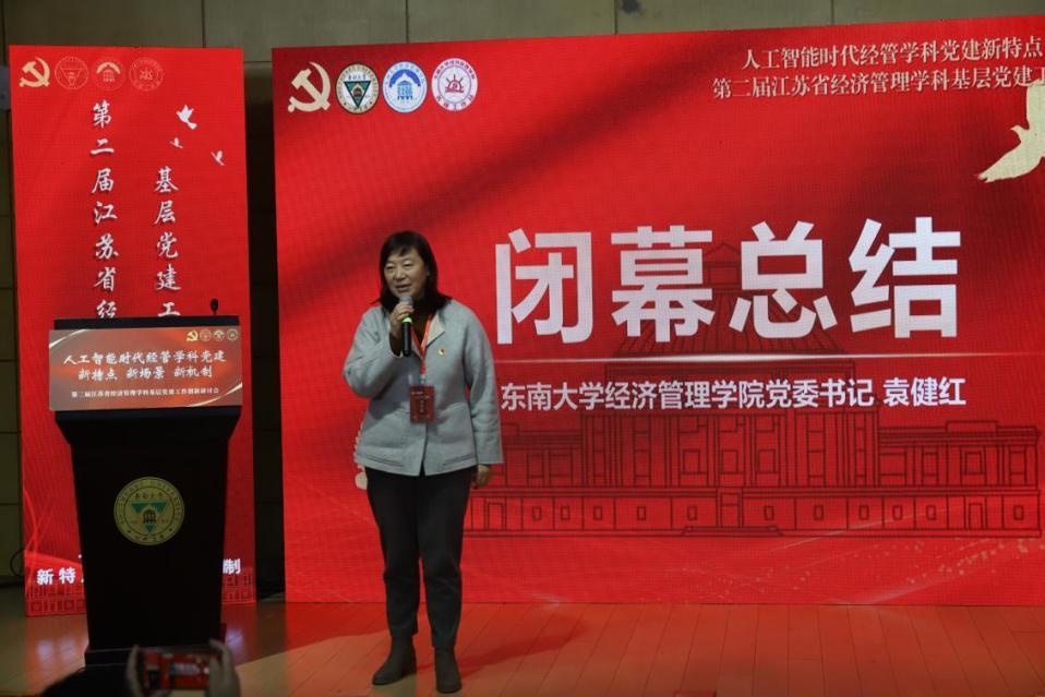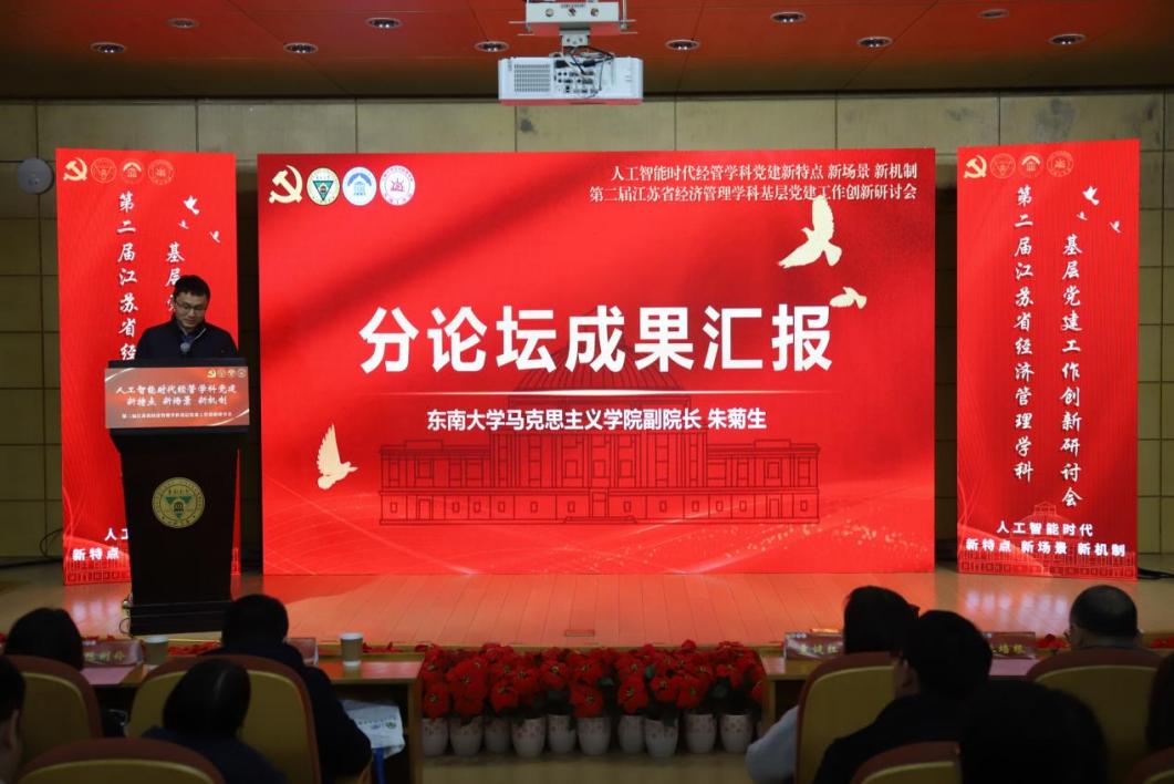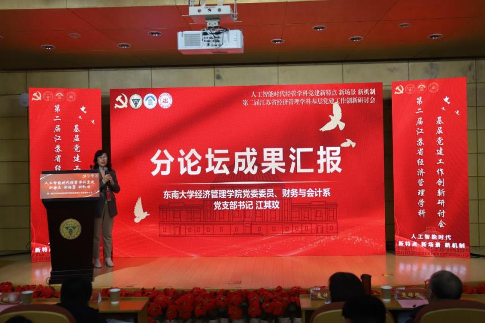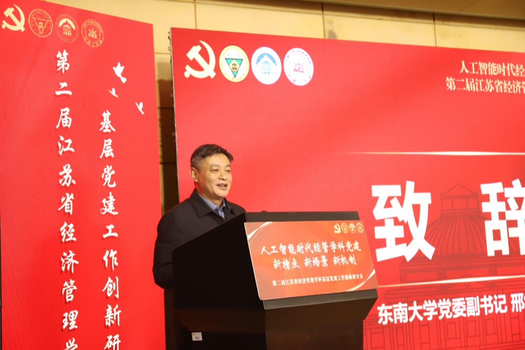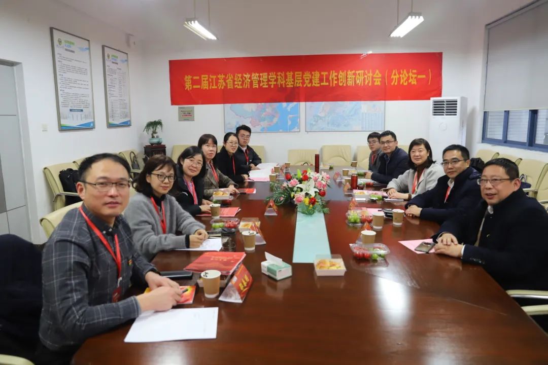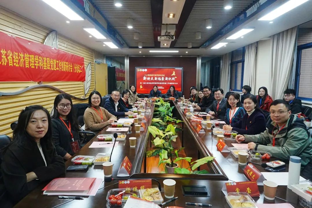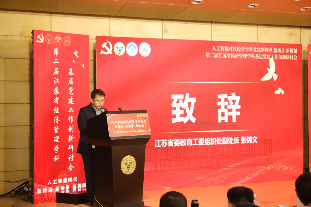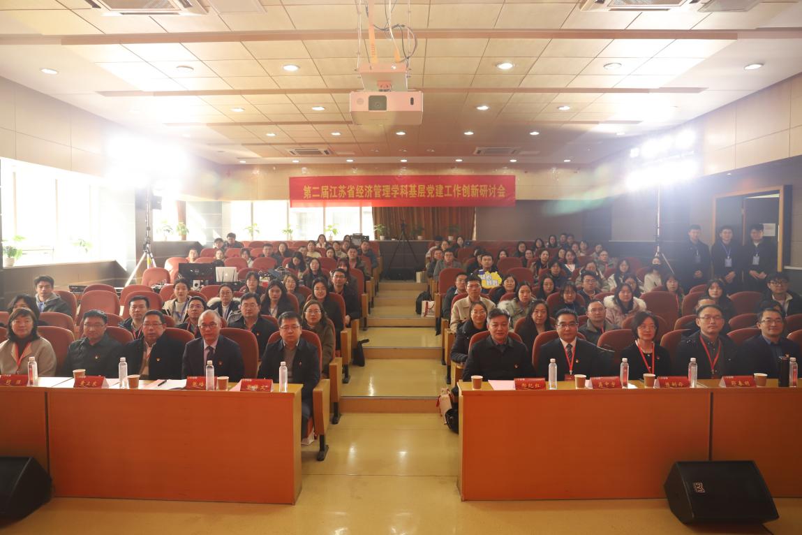 江苏省委教育工委组织处副处长张锦文在致辞中强调,要通过党建把好人才培养的“政治观”,坚持用习近平新时代中国特色社会主义思想铸魂育人,落实习近平新时代中国特色社会主义思想“三定”工作;要以党建把好学科建设的“定位关”,坚持支部建在学科上,推进党支部、研究所、学科方向、学术团队一体建设;要以党建把好学科发展的“脊梁关”,推动“党建+教学”“党建+科研”“党建+育人”,将高质量发展的导向融汇到经济管理学科建设各个方面。