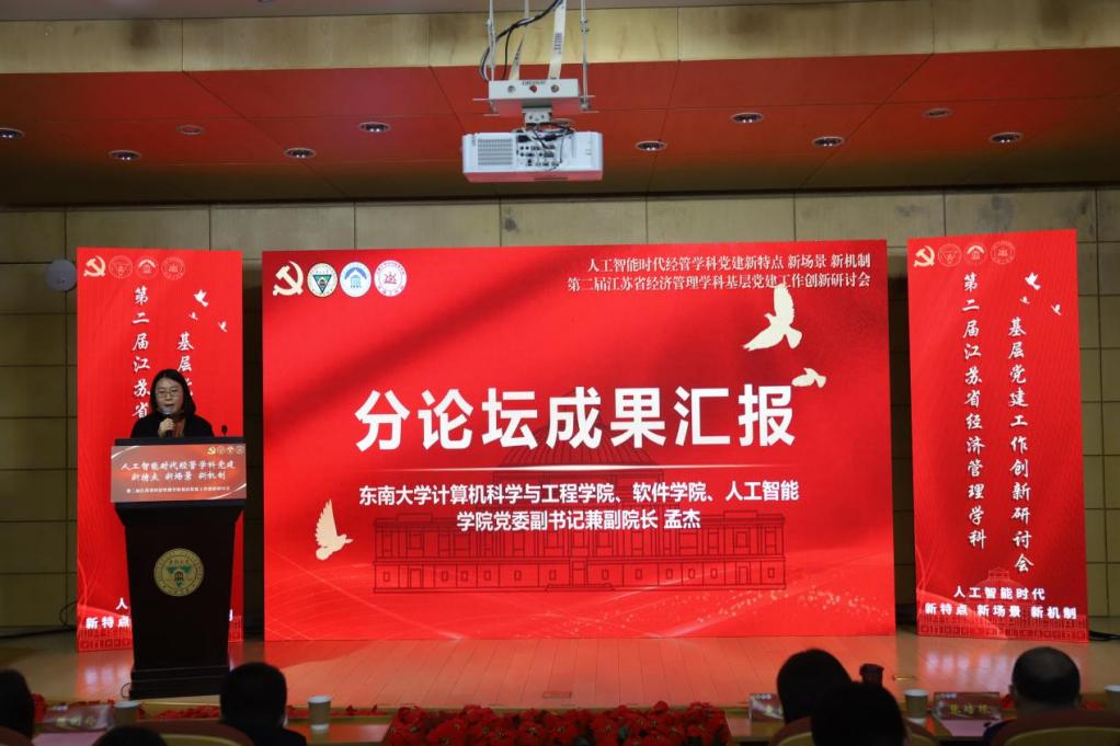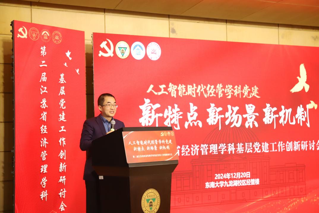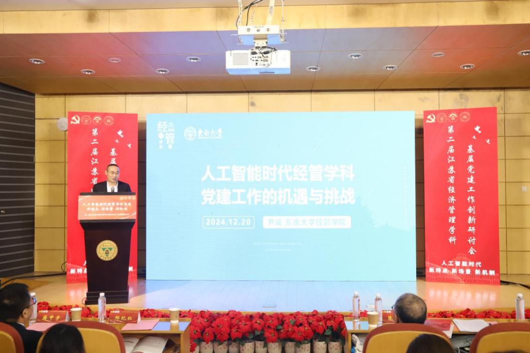 2024年12月20日,第二届江苏省经济管理学科基层党建工作创新研讨会在电影天堂 成功举办。研讨会由电影天堂 主办,学院先锋党建工作站承办。本届研讨会以人工智能时代经管学科党建新特点、新场景、新机制为主题,旨在深入学习贯彻党的二十届三中全会精神与全国教育大会精神。来自南京大学、电影天堂 、南京航空航天大学、南京理工大学、南京农业大学、南京师范大学、中国药科大学、中国矿业大学、江南大学、南京邮电大学、南京林业大学、南京信息工程大学、南京财经大学、南京审计大学、江苏科技大学、南通大学和人工智能领域专家学者及政府与企业代表齐聚南京,共同探讨新时代人工智能、党建、经管的有机融合与创新,分享经验、应对挑战。研讨会开幕式由电影天堂 党委书记袁健红主持。