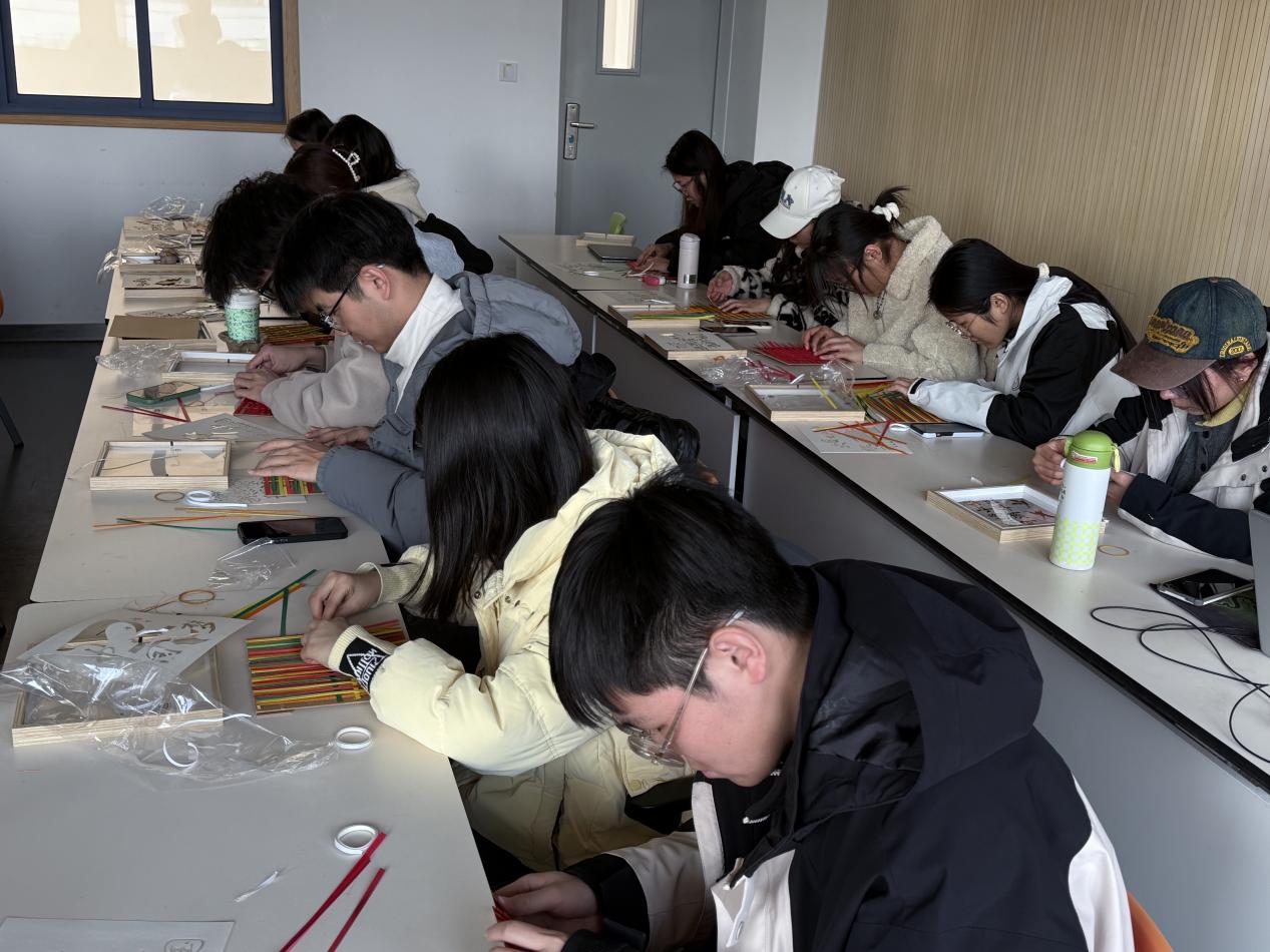 活动伊始,主持人以生动的讲解带领同学们走进竹编的历史长河。作为国家级非物质文化遗产,竹编从最初的生活技能逐渐演变为艺术表现形式。从固定竹篾、叠加编织到装裱成画,主持人详细拆解了竹编画的制作步骤,让同学们对这项古老工艺有了更深刻的理解。