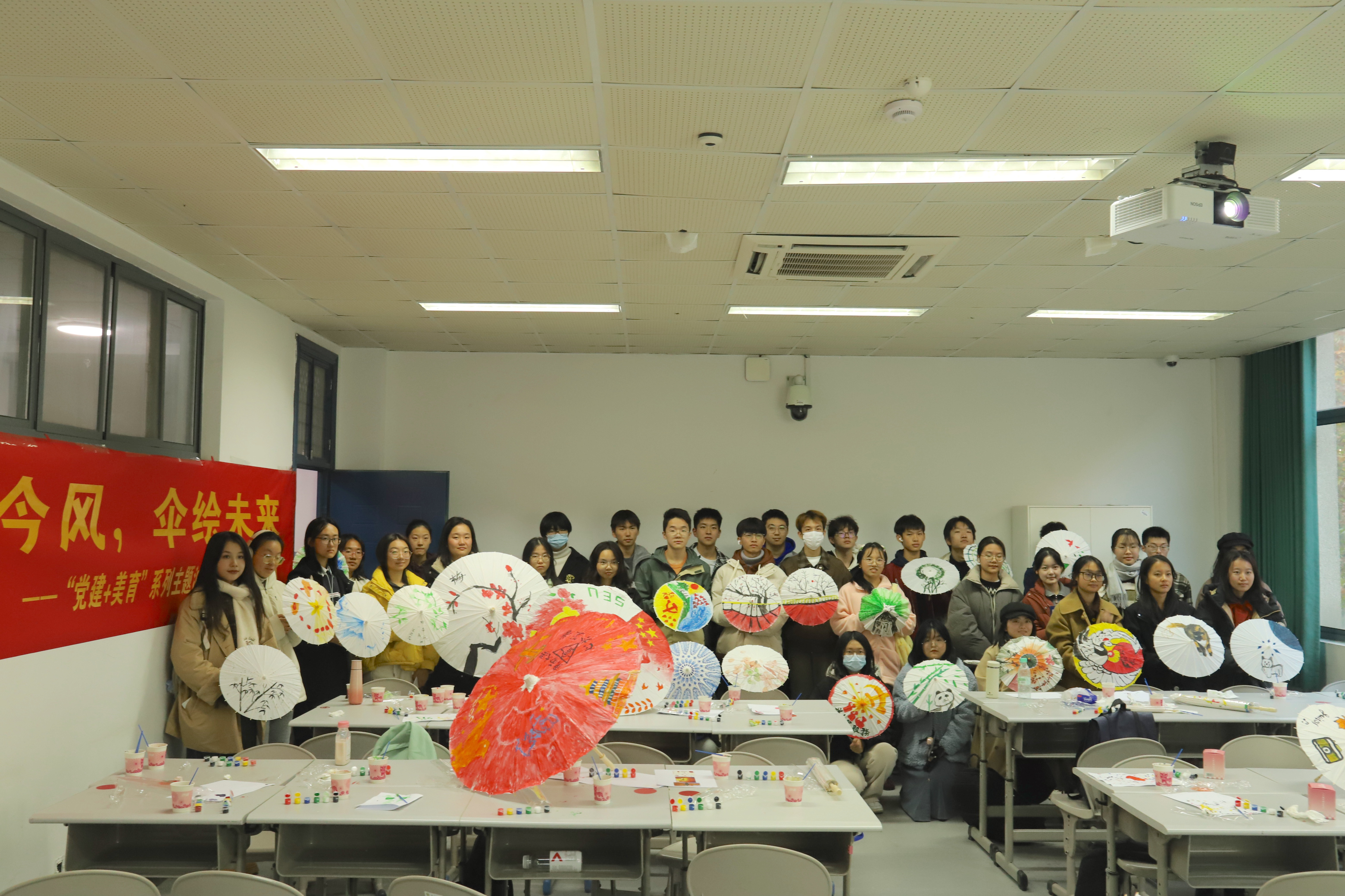 油纸伞活动将传统文化与创新思维相结合,让同学们在制伞绘伞的过程中焕发创意、思考意义、体悟党性,是一次“党建美育共联袂”的成功范本,是一次与传统美学艺术相交融的时代对话。期待同学们通过此次的油纸伞创作之旅,能够传承并发扬好中国传统文化,提高自身美学修养,力争成长为符合新时代要求的合格党员!