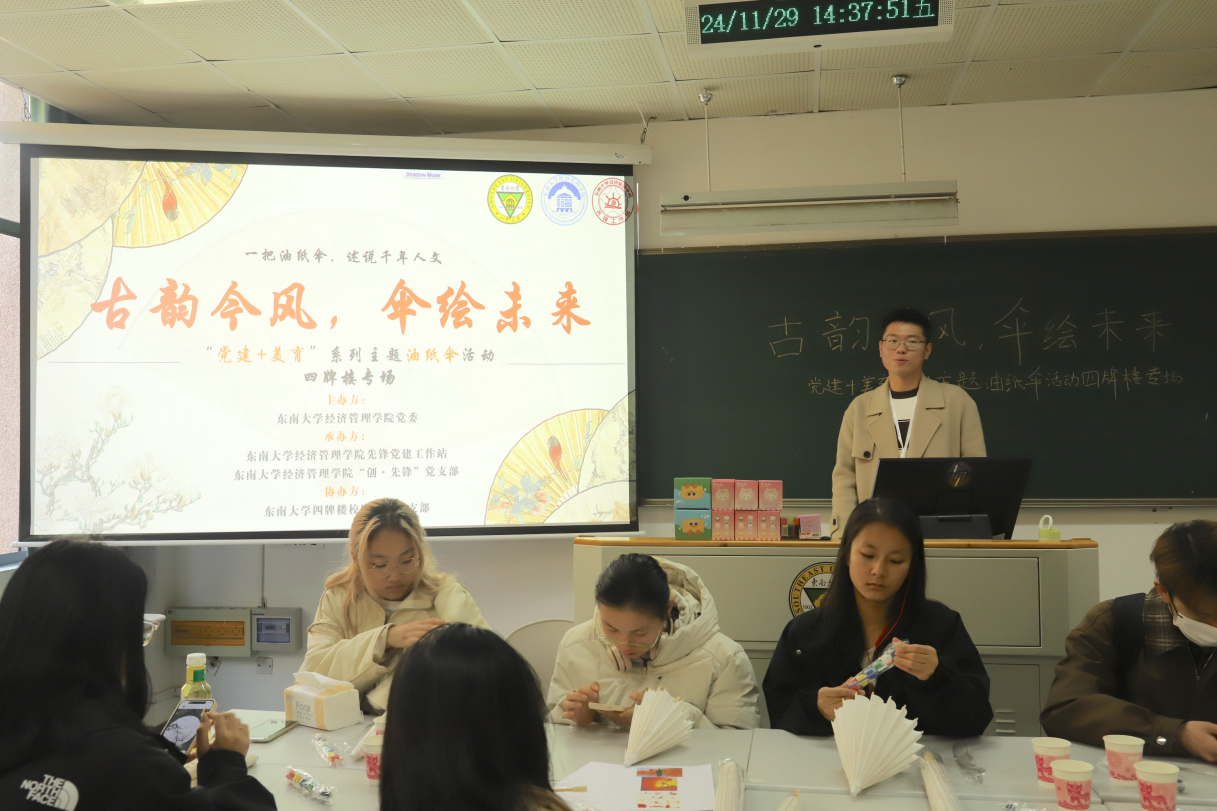 党委主办,学院先锋党建工作站、“创·先锋”党支部承办的特色“党建+美育”系列活动,获得广大师生的关注与好评。金梧树下,油纸伞再次绽放,为四牌楼校区新生党支部的同学带来文化与底蕴的熏陶。