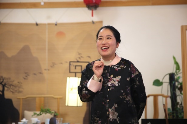 之后,杨琳老师带来了茶文化讲座。她首先讲述了自己与刘然老师、与茶之间的不解之缘,为制作一款好茶,她们登高山、寻茶树、闻茶香,制茶叶,不忘初心,用心做茶。接着,结合实物展示,杨老师重点介绍了茶叶的生长特点、茶的六大工艺、品类、特点以及保存、品鉴方式等。