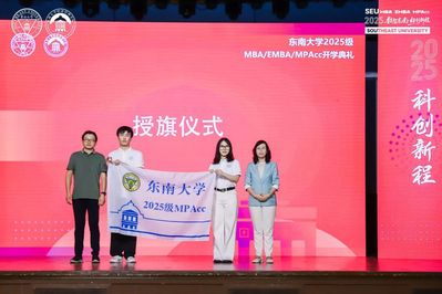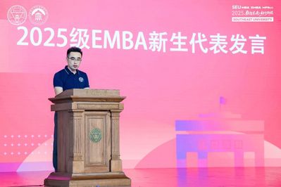 在校生代表2024级EMBA周城同学分享了在校学习的经历与心得,他的感悟对新同学也是未来道路上的助力与指引;EMBA杨明、MBA蒋马利与MPAcc钱海宁作为新生代表发言,他们各自表达了对东南精神的理解,分享了对未来学习生活的规划与憧憬。