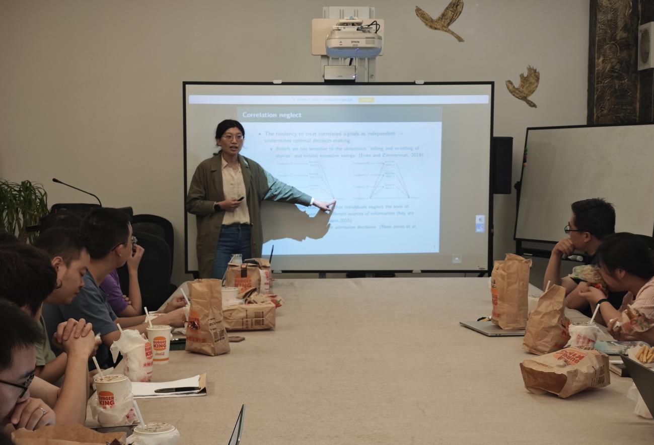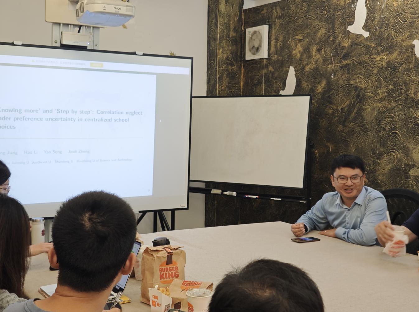 2025年9月24日,电影天堂 第八期学术午餐会在经管楼B203成功举行。本次活动由电影天堂 副院长丁溢主持,特邀李昊老师主讲,吸引了20位师生参与,众多师生齐聚一堂,在轻松平等的午餐交流氛围中,共同探讨经济学前沿问题。