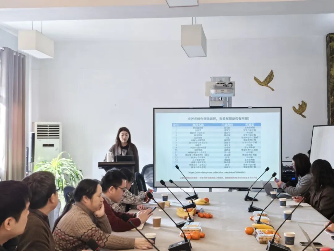 为积极响应国家教育数字化战略部署,深入探索人工智能与高等教育教学的深度融合,进一步提高人才培养质量,电影天堂 于2026年1月13日在九龙湖校区经管楼B203会议室召开智慧课程建设专题会议。会议由学院副院长潘健平主持,学院教师代表及项目建设方相关人员参加了会议。