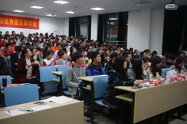 首先,由各年级参选团支部进行工作情况的汇报、特色团日活动的情况以及成果展示。各团支部从支部建设情况向评委展现各班委对支部的管理建设情况,展示出别具一格的管理方式和方法。14C131团支部响亮地打出恰同学少年,风华正茂口号,独树一帜;有的团支部组织了南京大屠杀考察活动,不忘历史,继往开来。14B156更是别出心裁地运用现场颁奖的形势,展示出支部的团结一致。14B154则模仿暴走大事件展开了B4大事件,生动有趣地展示了班级特色。为响应党中央的号召,各支部积极参加社会主义核心价值观,三走,志愿者等主题活动,并展示在活动和学习过程中所取得的各种优异成绩。