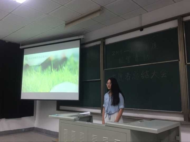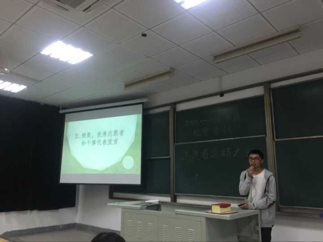 协会前任会长王晓郡和现任会长张琰先后就志愿活动进行总结,指出了在过去一年工作里出现的优点和缺点,以及对协会未来的展望,表达了对青协的祝福和青年志愿者工作的期待。在会上,会长团成员为志愿者们颁发了志愿活动证明,并为各部门的优秀干事颁发了证书。最后,优秀志愿者代表张凯亮同学发言并提出:作为志愿者,我们应该要有“爱心”、“耐心”、“平等心”和“感激的心”。对在场的志愿者产生了很大的启发。