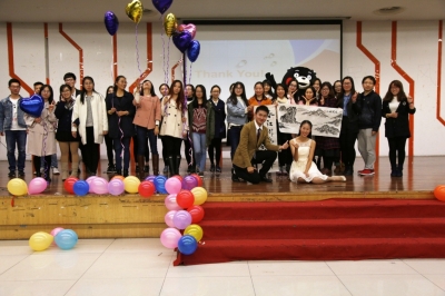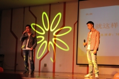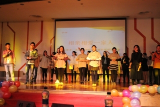 晚会最后,经管学院研究生会全体成员一起走上舞台,带来了手语歌表演。优美整齐的手语,悦儿动听的歌声,以及最后大家的手挽手,这样“一家人”的相亲相爱似乎温暖了整个寒冷冬夜,也为晚会节目画上了圆满的句号。