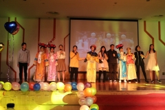 英俊的男主持和温婉的女主持人缓缓移步舞台,灯关亮起,一一介绍了莅临晚会的嘉宾之后,晚会在一片热烈的掌声中正式开始。管工班的合奏尤克里里,All of me传达出恋爱中的美好,让大家为相遇而感到庆幸和期待;金融班结合提炼了电影天堂 两个月的研究生生活,生动幽默的三句半逗起大家的阵阵笑声,现场轻松而活跃;管工班和会计班唱起了情歌,管工班的王殿元和罗一鸣对歌曲的完美演绎在现场圈粉无数,男女深情对唱珊瑚海也引起了大家对爱情的共鸣;会计班和金融办的同学的《春到湘江》将晚会带入了另一个古朴文艺的氛围,竹笛声声,书法字画,全场带着惊羡和赞叹,沉醉在这美丽的湘西生活;应用经济学班的同学就为我们带来了歌剧童年,婉转的越南语和婉约越南奥黛,如同童年一般,美好静好;物流班的合唱就传达出每个人对于相逢的喜悦,同心共勉,九龙湖,同窗的你,是我的小幸运;应用经济学班与金融班的这首《青春修炼手册》,活力四射,更有可爱的熊本送福利,欢乐渲染了整个会场;校研会文化部带来的傣族舞《朵儿朵》更是美轮美奂。