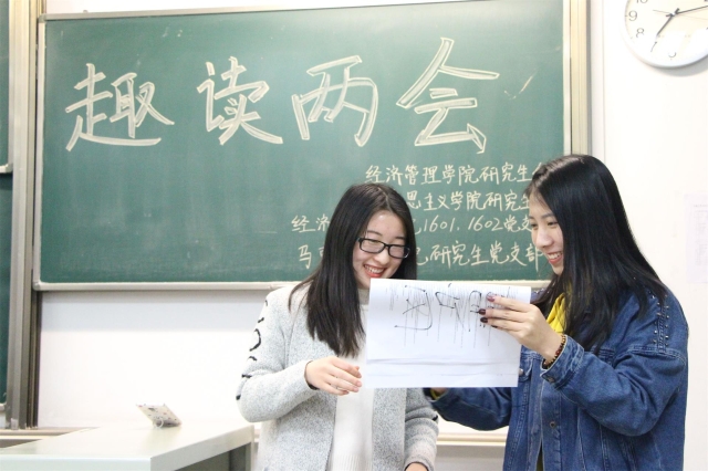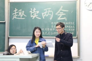 1601、1602党支部、马克思主义学院研究生党支部协办的“趣读两会”活动在纪忠楼Y-306成功举办。两个学院的同学都对本次活动表现出极大的热情,活动氛围十分热烈。