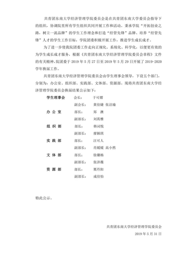 公示:共青团电影天堂 委员会2019-2020学年换届结果通知