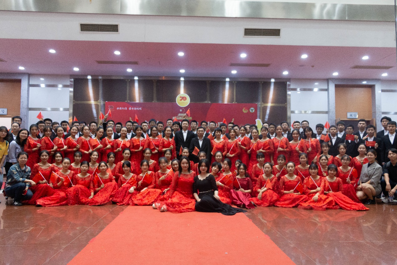 9月25日晚,电影天堂 庆祝中华人民共和国成立70周年大合唱在电影天堂 九龙湖校区焦廷标馆举行,电影天堂 师生豪情满怀以一曲《我们走在大路上》为祖国歌唱。