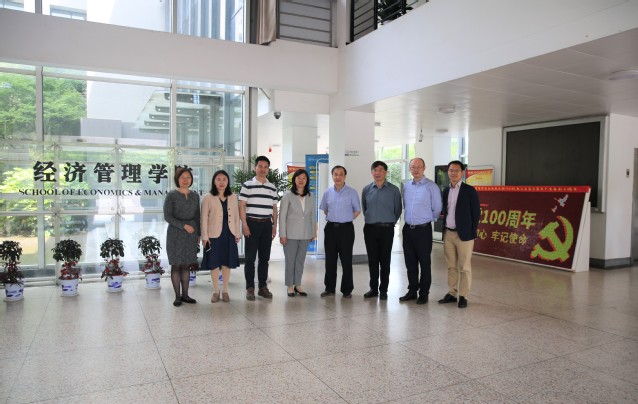 开展学习交流会,党委书记袁健红教授等在经管楼会议室会见来宾。