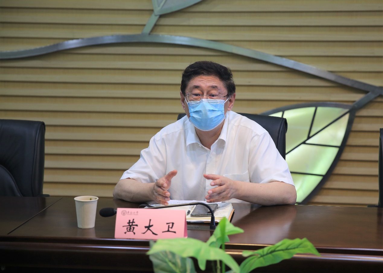 会议最后,黄大卫副校长发表讲话,他首先强调了学院高度重视两件事: 一是要持续深入学习宣传贯彻习近平新时代中国特色社会主义思想,坚持不懈用党的创新理论武装头脑、指导实践、推动工作,扎实开展党史学习教育,近期要做好专题组织生活会,党员领导干部要严格执行双重组织生活会制度。二是要按照校党委的统一部署,严格落实学校疫情防控各项要求,切实做好学院疫情防控各项工作,把广大师生的生命安全放在第一位,并做好师生线上教学的各项工作。他还对学院改革发展提出四点要求:一是要凝聚全院师生的智慧,凝练学院新五年改革发展举措,大力推进学院在学科建设、人才培养、科学研究、师资队伍、国际化合作等方面的发展,支持国家发展与政策研究院的建设,努力成为国家级智库并切实发挥作用。二是要加大人才引进力度,牢固树立人才是第一资源的意识,通过高端人才集聚引领学院长足发展,迈向一流。三是要持续走国际化道路,深入推进学院国际化办学工作,在全球疫情和经贸形势的不确定性下,主动做到“危机中育新机,变局中开新局”,开拓视野,广泛而深入地寻求国际合作。四是要大力加强校友工作,深入挖掘校友资源和社会资源,面向经管校友联合学校基金会策划开展系列活动,加强与校友沟通平台的建设,全面维系经管学院各类校友资源网络,推进经管学院发展基金工作,打造学院发展“蓄水池”。