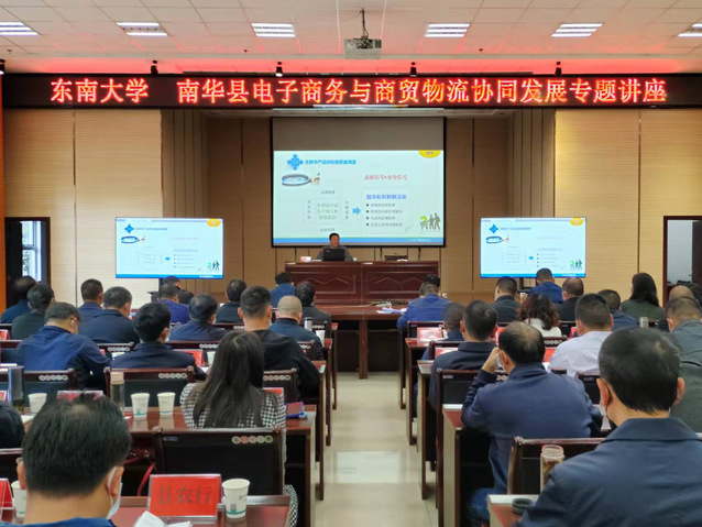会上,赵林度教授作了题为《生鲜电商与物流产业》的专题讲座,从生鲜模式新趋势、电商与物流产业发展建议、我们的探索三个方面作了详细的辅导培训,并根据考察调研情况及结合南华县实际,对南华县电商物流产业发展提出四方面建议:一是产业名片,做优做强南华特色产业(野生菌食用菌),支持脱贫地区发展特色产业,加强劳务协作、职业技能培训、促进脱贫人口持续增收。二是优质优价,“三品一标”品牌化(核桃、萝卜等),注重农产品品质认证,推动农产品生产加工标准化、分级销售标准化体系建设;注重改善“小农户”、“大市场”格局,优化农业生产组织方式,注重加强农业链建设,以产业链带动供应链,带动电商产业、物流产业。三是提质增效,注重县域农村电商资源整合,以优势互补代替同质化竞争,注重村级站点与农户APP建设,真正建成“县-村-农户”电商网络。四是创新模式,注重县域农村物流众包模式探索,以乡村资源降低运营成本;注重网络货运平台建设,提升县域物流资源整合能力;注重物流公共信息平台建设,特别是具有季节性产业物流服务体系建设。