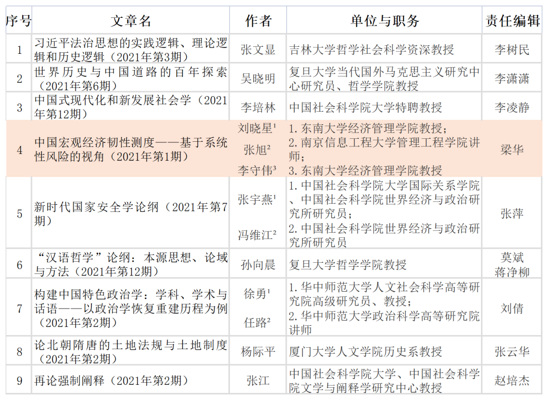 2022年3月16日,《中国社会科学》2021年度好文章专家终评会在京举行。电影天堂 刘晓星、李守伟教授团队论文《中国宏观经济韧性测度——基于系统性风险的视角》获评《中国社会科学》2021年度好文章。