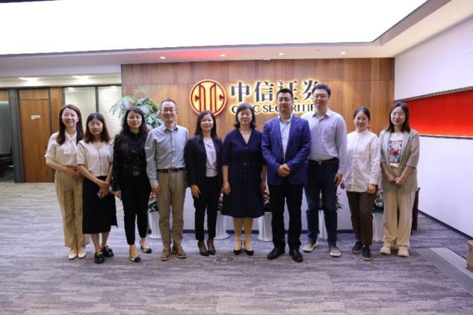On the morning of May 25, Yuan Jianhong, Secretary of the Party Committee of the School of Economics and Management of Southeast University, and other officers went to CITIC Securities Jiangsu Branch to carry out the special action of "visiting enterprises to expand jobs and promote employment". He Yi, Deputy Secretary of the Party Committee and Deputy Dean of the School of Economics and Management, Pu Zhengning, Deputy Dean, Zheng Kairong and Wang Xiaotong, postgraduate counselors, Xie Siyuan, General Manager of CITIC Securities Jiangsu Branch, Zhang Cuilian, Deputy General Manager, Liu Yan, General Manager of Retail Client Department, Lu Xiaodong, General Manager of Wealth Client Department, Long Jia, General Manager of Institutional Client Department, Shen Guobin, General Manager of Operation Management Department, and Wang Yujuan, General Manager of Human Resources Department attended the event.