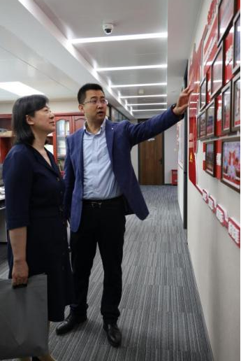 In the end, accompanied by Xie Siyuan, general manager of Jiangsu Branch, Secretary Yuan Jianhong and other officers visited the company's office area and honor wall, and further understood the development background, vision, and mission of CITIC Securities and the regional development characteristics of Jiangsu Branch.