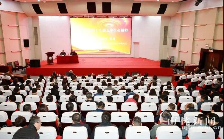 Professor Xu Kangning made the report about the spirit of the Fifth Plenary Session of the 19th Central Committee of the Communist Party of China in Nanjing Forestry University.