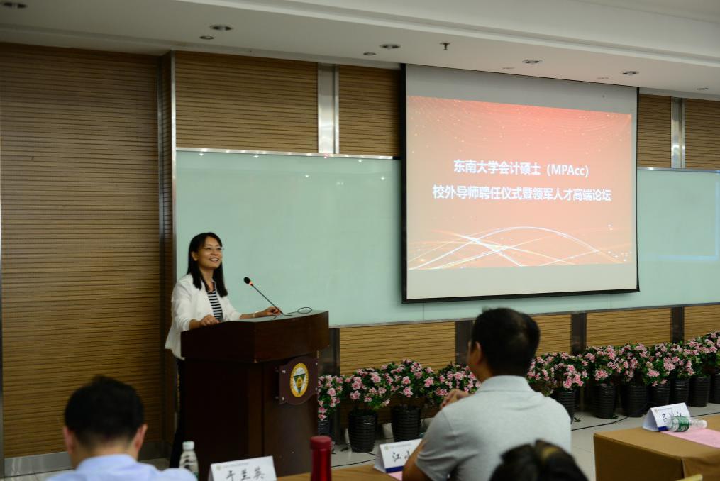 On the morning of September 8, the appointment ceremony of external supervisors of Southeast University Master of Professional Accounting (MPAcc) and the high-end forum of leading talents were held at the Sipailou campus of Southeast University. Prof. Jin Baosheng, Vice President of Southeast University, Prof. Yuan Liudi, Vice Dean of Graduate School, Prof. Lv Hongjiang, Vice Dean of School of Economics and Management, Prof. Chen Zhibin, Head of Department of Finance and Accounting of the School of Economics and Management, 54 external supervisors and the students of MPAcc of Grade 17 and 18 attended the meeting.