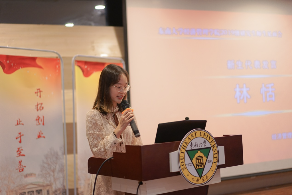 Zhang Fan, a 2018 graduate student, delivered a speech