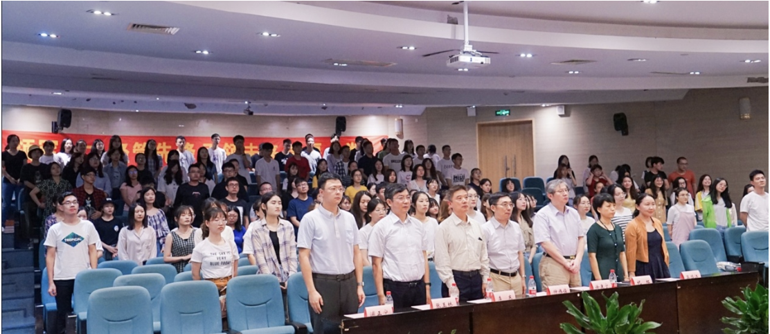 On the afternoon of September 5th, the meeting of 2019 graduate students and teachers of the School of Economics and Management was held in the circular lecture hall on the first floor of Jiaotingbiao Hall. Party and government leaders, academic leaders and faculty representatives attended the meeting together with the 2019 freshmen. In the solemn national anthem, the meeting of 2019 graduate students and teachers officially kicked off.