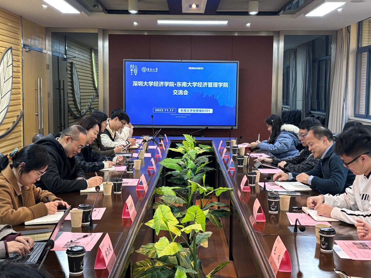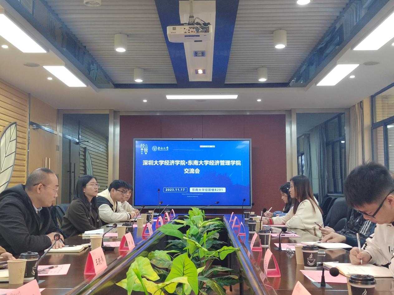 On the morning of November 20, Yin Wei, Deputy Secretary of the Party Committee and Associate Dean of the School of Economics and Management at Southeast University, and the counselor teachers of the School carried out student work exchange, research, and seminar activities with the team led by Zhang Jianhua, Deputy Secretary of the Party Committee of the School of Economics at Shenzhen University. The activities took place in the Economics and Management Building of Jiulonghu Campus at Southeast University.