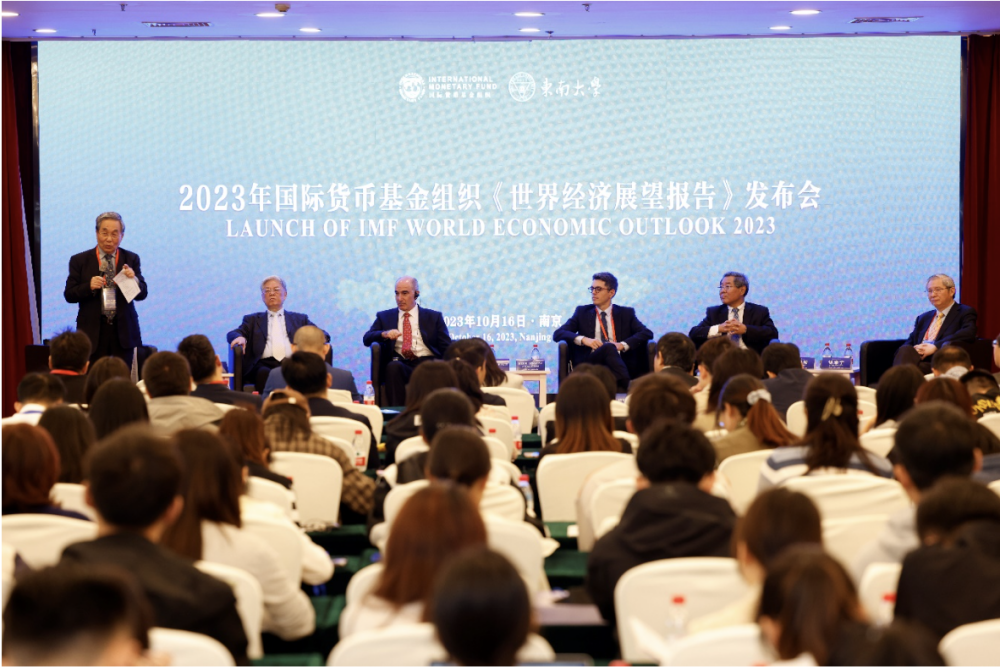 On the morning of October 16th, the "2023 International Monetary Fund (IMF) World Economic Outlook Report Press Conference" was grandly held in Nanjing, which was hosted by the International Monetary Fund Representative Office in China and the School of Economics and Management of Southeast University, co-organized by the Institute of Digital Economy and Technological Innovation of Southeast University, the Macroeconomic Society of Jiangsu Province, and co-sponsored by Southeast University MBA Alumni Association.